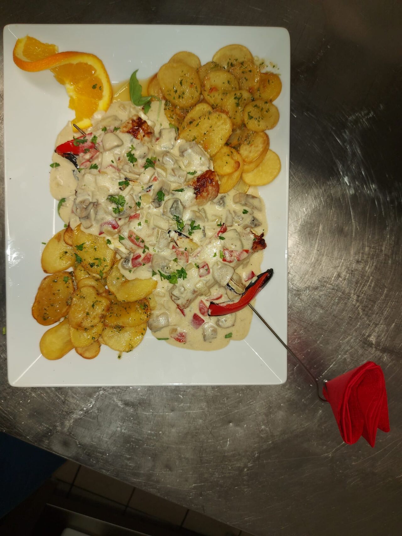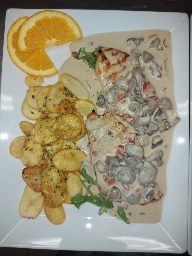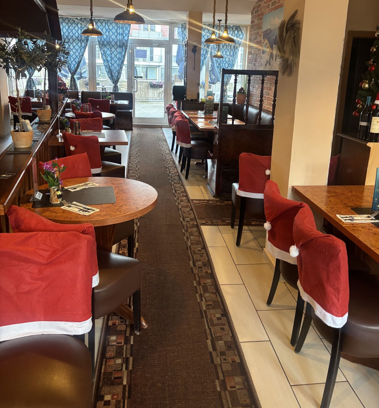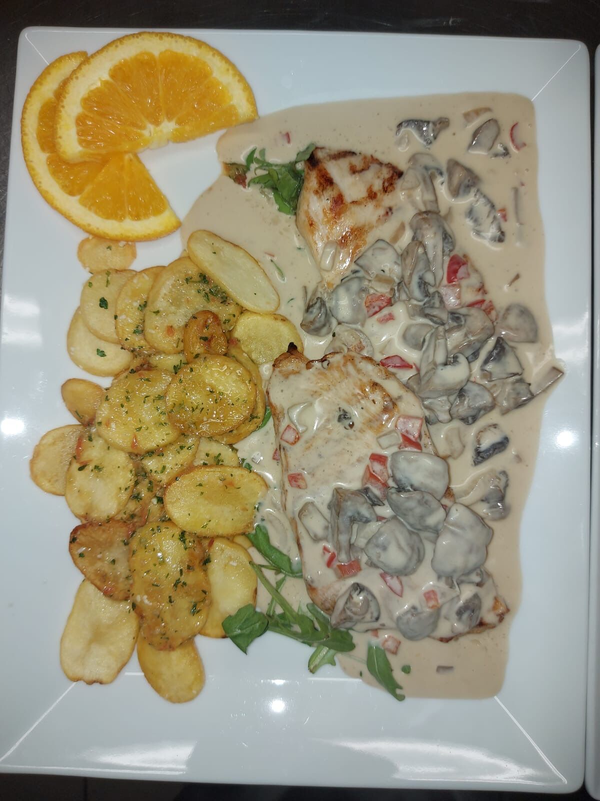 Sie möchten lieber zu Hause bleiben? Mit unserem Abhol- und Lieferservice können Sie unsere köstlichen Gerichte ganz bequem zu Hause genießen. Zu den Annehmlichkeiten gehören eine beheizte Terrasse, eine Dachterrasse mit Bar, ein Buffet, Außengastronomie und Parkplätze. Wir richten Veranstaltungen aus. Kontaktieren Sie uns gerne für weitere Informationen. Es gibt eine gemütliche Kinderecke, in der Ihre Kleinen sich vergnügen können. Haustiere sind bei uns ebenfalls willkommen. Ein separater Raucherbereich ist vorhanden. Wir akzeptieren verschiedene Zahlungsmethoden.
